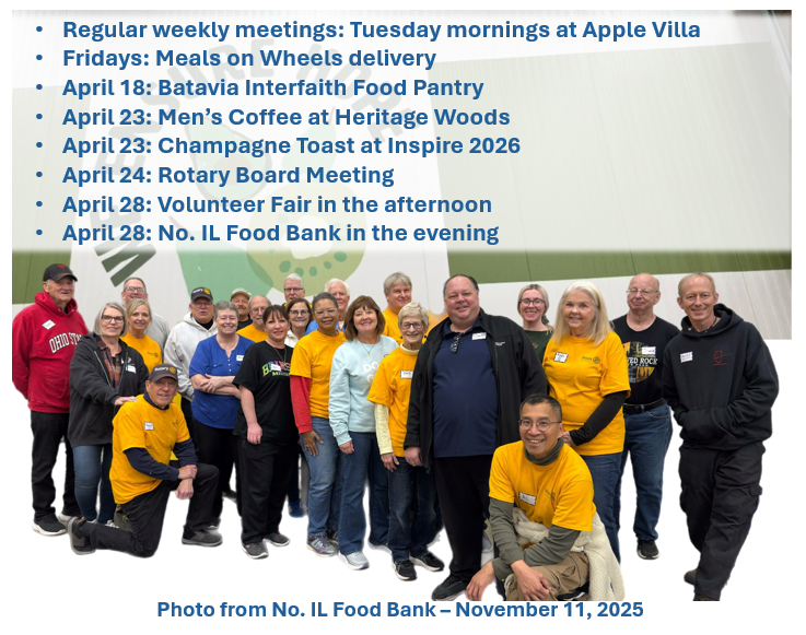 Plus, there will always be an impromptu opportunity or two. Join us any Tuesday at our regular meeting to learn more about Rotary and how you can impact your community.